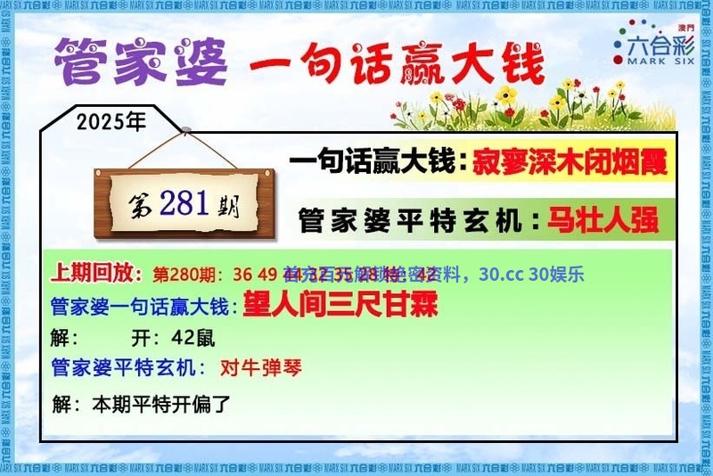 281期:🧡三门中特🧡【3.4.5门】开:羊47中 |